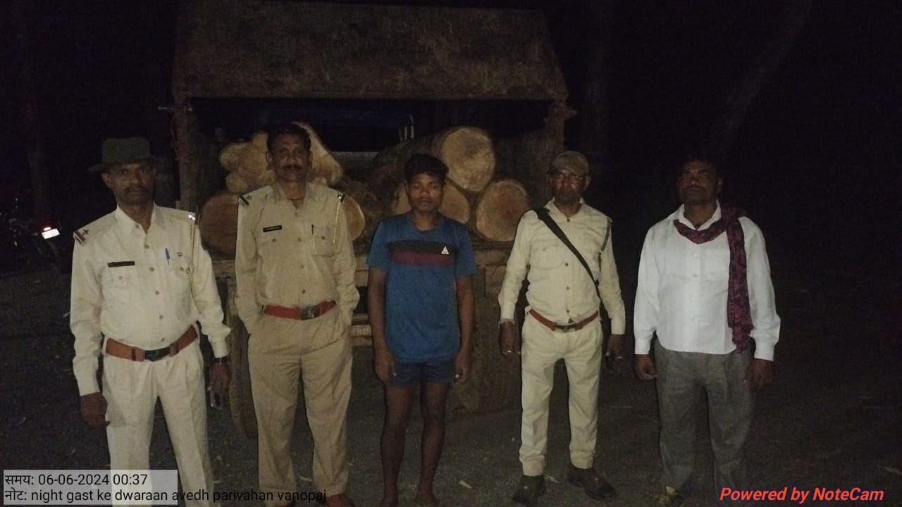 वनमंडलाधिकारी, कवर्धा वनमंडल के अनुसार 5 जून 24 की रात्रि 11.40 बजे मुखबीर की सूचना पर मुखबीर की सूचना पर वन परिक्षेत्र रेंगाखार अंतर्गत परिक्षेत्र सहायक समनापुर, परिसर रक्षक तरमा, परिसर रक्षक अंजना एवं अन्य 2 श्रमिक की समिति गठित कर रेंगाखार अंतर्गत कक्ष क्रमांक आर.एफ. 129 परिसर तरमा में तरमा से बोदा (डोंगरिया) मार्ग पर अवैध रूप से परिवहन करते हुए तिंसा काष्ठा लट्ठा 6 नग 1.059 घ.मी. अनुमानित मूल्य 22000/ तथा 01 नग ट्रेक्टर (रंग नीला) ट्राली सहित अनुमानित मूल्य 6 लाख रुपए जप्त किया गया।