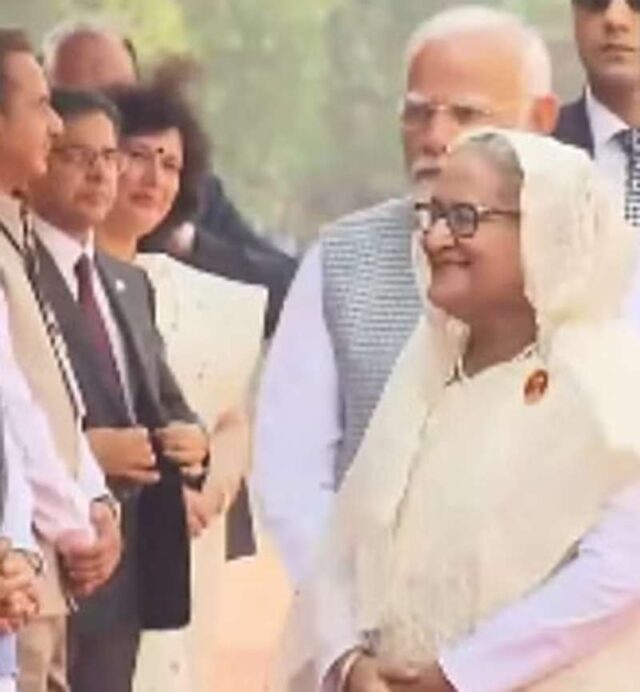 नई दिल्ली। बांग्लादेश की प्रधानमंत्री शेख हसीना दो दिवसीय दौरे पर भारत आई हुई हैं। शुक्रवार को दिल्ली एयरपोर्ट पर विदेश राज्य मंत्री कीर्तिवर्धन सिंह ने उनका स्वागत किया। प्रधानमंत्री नरेंद्र मोदी के नेतृत्व में शेख हसीना का राष्ट्रपति भवन में स्वागत किया गया। इसके बाद शेख हसीना और पीएम मोदी ने राष्ट्रपति के प्रांगण में दोनों देशों के मंत्रियों से मुलाकात की। इस दौरान बांग्लादेश की पीएम का स्वागत के लिए पीएम मोदी के साथ विदेश मंत्री एस. जयशंकर, केंद्रीय मंत्री जेपी नड्डा, राज्य मंत्री जीतेंद्र सिंह और कीर्तिवर्धन सिंह भी मौजूद रहे। शेख हसीना ने राजघाट में जाकर महात्मा गांधी को श्रद्धांजलि भी अर्पित की। विदेश मंत्रालय के प्रवक्ता रंधीर जयसवाल ने कहा कि शेख हसीना का यह दौरा भारत-बांग्लादेश दोनों देशों के संबंधों को बढ़ावा देगा। उन्होंने सोशल मीडिया प्लेटफॉर्म एक्स पर पोस्ट करते हुए कहा, “भारत के दौरे के लिए बांग्लादेश की प्रधानमंत्री शेख हसीना दिल्ली पहुंचीं। विदेश राज्य मंत्री कीर्तिवर्धन सिंह ने उनका स्वागत किया। बांग्लादेश भारत का एक प्रमुख भागीदार और विश्वसनीय पड़ोसी है। यह दौरा भारत-बांग्लादेश देशों के संबंधों को बढ़ावा देगा।” राजघाट पर श्रद्धांजलि अर्पित करने के बाद शेख हसीना ने दिल्ली के हैदराबाद हाउस में पीएम मोदी से मुलाकात की। यहां दोनों नेता द्विपक्षीय बैठक में शामिल हुए। दिल्ली पहुंचने के बाद शेख हसीना ने विदश मंत्री एस जयशंकर से मुलाकात की। इस मुलाकात पर जयशंकर ने कहा कि उनकी राजकीय यात्रा दोनों देशों के घनिष्ठ संबंधों को उजागर करती है। उन्होंने एक्स पर कहा, “आज शाम (शुक्रवार की शाम) शेख हसीना से मुलाकात करके खुशी हुई। उनकी राजकीय यात्रा दोनों देशों के घनिष्ठ और स्थायी संबंधों को प्रदर्शित करती है। विशेष साझेदारी और आगे के मार्गदर्शन के लिए उनकी सराहना करते हैं।” प्रधानमंत्री नरेंद्र मोदी के लगातार तीसरी बार पदभार संभालने के बाद यह किसी विदेशी नेता का पहला भारत दौरा है। इससे पहले शेख हसीना पीएम मोदी के शपथ ग्रहण समारोह में भी शामिल हुई थीं। बांग्लादेशी पीएम का यह 15 दिनों के भीतर दूसरा भारत दौरा है। पीएम मोदी के साथ द्विपक्षीय संबंधों पर बातचीत के अलावा शेख हसीना भारत की राष्ट्रपति द्रौपदी मुर्मू और उप राष्ट्रपति जगदीप घनखड़ से भी मुलाकात करेंगी। पिछले कुछ वर्षों में भारत-बंग्लादेश ने ऐतिहासिक, संसकृति और भौगोलिक क्षेत्रों में अपने संबंध मजबूत किए हैं। पिछले साल दोनों देशों के बीच भारत-बांग्लादेश मैत्री पाइपलाइन का उद्घाटन हुआ था