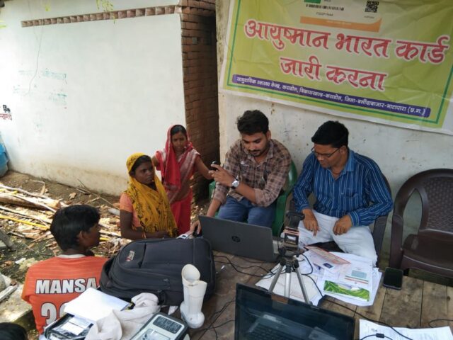 स्वास्थ्य परीक्षण के साथ बनाया जा रहा आधार,आयुष्मान,श्रम एवं राशन कार्ड,शासकीय योजनाओं की दी जा रही जानकारी