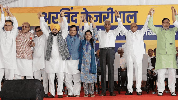 नई दिल्ली. दिल्ली के मुख्यमंत्री अरविंद केजरीवाल के बिगड़ते स्वास्थ्य और अवैध गिरफ्तारी के खिलाफ इंडिया गठबंधन की जंतर मंतर पर एक बड़ी रैली हो रही है। रैली में आम आदमी पार्टी के बड़े नेता और कार्यकर्ता बड़ी संख्या में पहुंचे हैं। अरविंद केजरीवाल की गिरफ्तारी और गिरते स्वास्थ्य को लेकर इंडिया गंठबधन द्वारा आयोजित धरना प्रदर्शन में आप के राज्यसभा सदस्य संजय सिंह और संदीप पाठक मंच पर पहुंचे।
