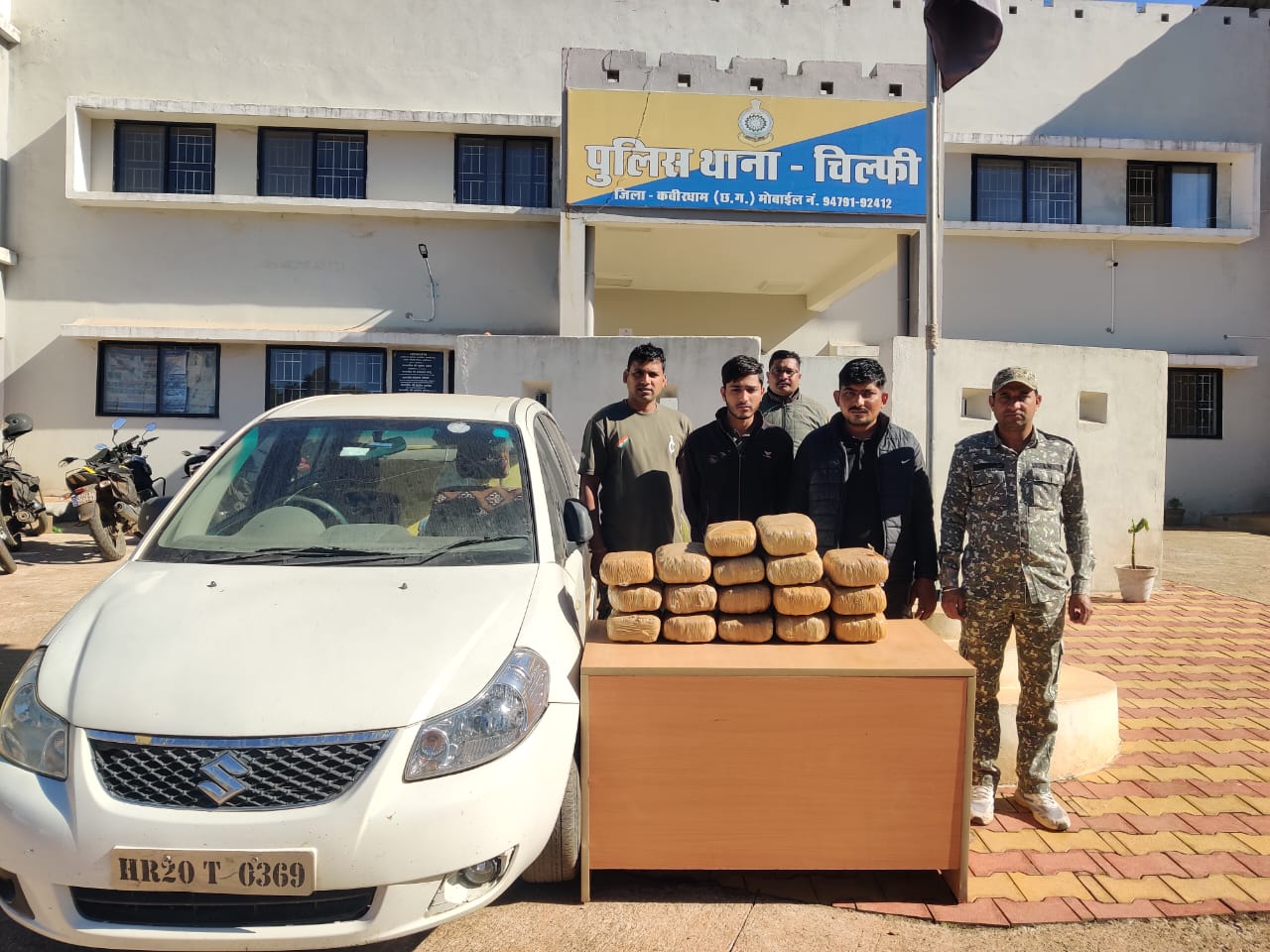 पुलिस अधीक्षक धर्मेंद्र सिंह के मार्गदर्शन, अतिरिक्त पुलिस अधीक्षक पुष्पेंद्र बघेल एवं पंकज पटेल के निर्देशन, और डीएसपी कवर्धा कृष्ण कुमार चंद्राकर के नेतृत्व में गांजा तस्करी के खिलाफ जिले में चलाए जा रहे अभियान के तहत चिल्फी पुलिस को एक बड़ी सफलता हाथ लगी है। उड़ीसा से राजस्थान गांजा की तस्करी के लिए दो लोगों द्वारा एक सफेद रंग की मारुति सुजुकी कार में यात्रा करने की सूचना मुखबीर से मिलते ही चिल्फी पुलिस