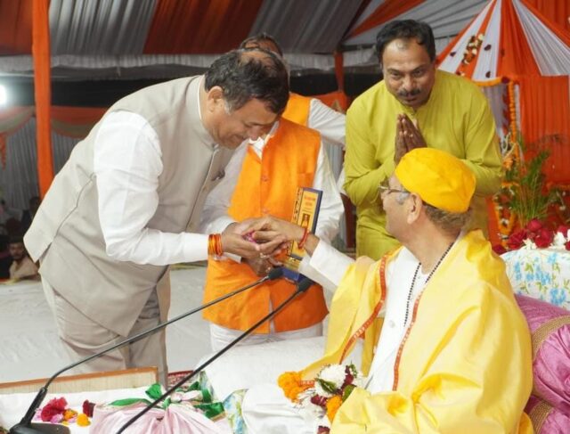 - भिलाई (समय दर्शन)। छत्तीसगढ़ में स्थित विश्व जागृति मिशन भिलाई दुर्ग मण्डल द्वारा आयोजित चार दिवसीय शिव ज्ञान गंगा महोत्सव के समापन समारोह में राज्य सरकार के खेल एवं युवा कल्याण मंत्री टंकराम वर्मा जी ने अपनी सरकार की ओर से तथा पूर्व मंत्री एवं विधानसभा अध्यक्ष श्प्रेम प्रकाश पाण्डेय ने पूज्य गुरुदेव सुधांशु जी महाराज जी का स्वागत एवं अभिनन्दन करते हुए आशीर्वाद लिए एवं सत्संग श्रवण किए।