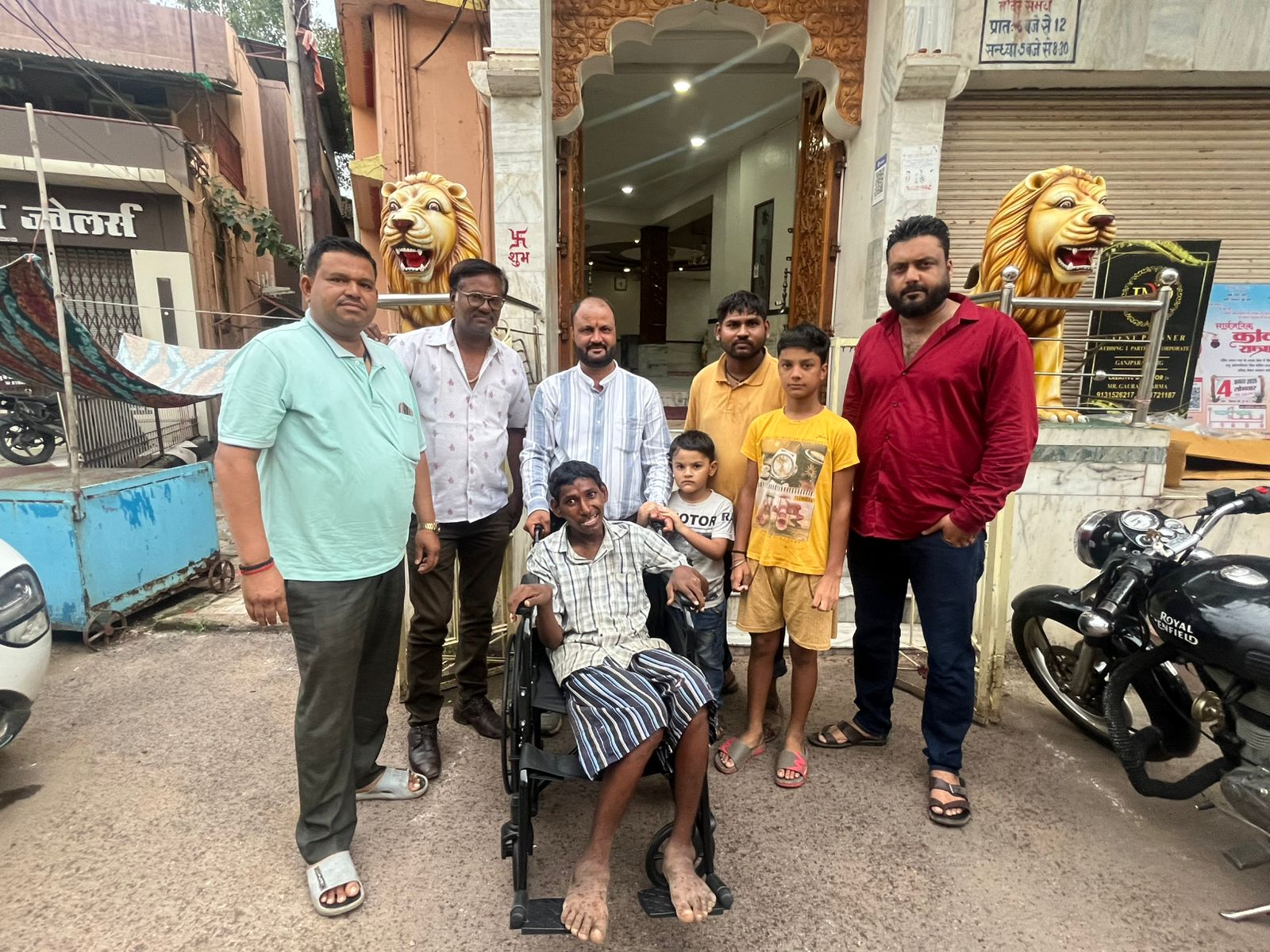 दोपहर 12 बजे पोलियों ग्रस्त एक युवा को जो बोल नही सकता और न अपना हाथ पैर चला सकता उसको उनके परिवार की मांग पर बंटी शर्मा ने अपने जन्मदिवस पर उस दिव्यांग युवा को तिलक लगाकर व्हीलचेयर प्रदान की जिस पर अब उसको बैठाकर परिवारिक जन सभी जगह ले जा सकते है