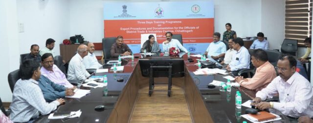 रायपुर : छत्तीसगढ़ में रैम्प (RAMP) योजना के तहत जिला व्यापार एवं उद्योग केंद्रों के अधिकारियों के लिए ‘निर्यात प्रक्रियाएँ और प्रलेखन‘ विषय पर तीन दिवसीय क्षमता विकास प्रशिक्षण कार्यक्रम का सफल आयोजन किया गया। यह प्रशिक्षण 19 से 21 जुलाई 2025 तक रायपुर स्थित उद्योग भवन में संपन्न हुआ, जिसे एक्सपोर्ट फैसिलिटेशन सेंटर और भारतीय विदेश व्यापार संस्थान कोलकाता के सहयोग से आयोजित किया गया। यह प्रशिक्षण कार्यक्रम अधिकारियों को अपने जिलों में निर्यात को बढ़ावा देने और स्थानीय उत्पादों को वैश्विक बाजारों तक पहुंचाने की दिशा में दक्ष और समर्थ बनाने में महत्वपूर्ण सिद्ध हुआ है।