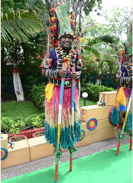 रायपुर- मुख्यमंत्री निवास में हरेली तिहार के अवसर पर पारंपरिक लोक यंत्रों की गूंज और छत्तीसगढ़ की सांस्कृतिक छटा के साथ सुंदर नाचा का आयोजन किया जा रहा है। पूरा परिसर उत्सवमय वातावरण से सराबोर है। ग्रामीण परिवेश की जीवंत छवि इस सुंदर माहौल में साकार हो गई है। कहीं सुंदर वस्त्रों में सजे राउत नाचा कर रहे कलाकारों की रंगत बिखरी है, तो कहीं आदिवासी कलाकार पारंपरिक लोक नृत्य की मोहक प्रस्तुतियाँ दे रहे हैं। छत्तीसगढ़ का अद्भुत ग्रामीण लैंडस्केप अपनी संपूर्ण सांस्कृतिक सुंदरता के साथ यहां सजीव रूप में अवतरित हो गया है। विभिन्न प्रकार की लोक धुनों में छत्तीसगढ़ी संगीत का माधुर्य अपने चरम पर है।