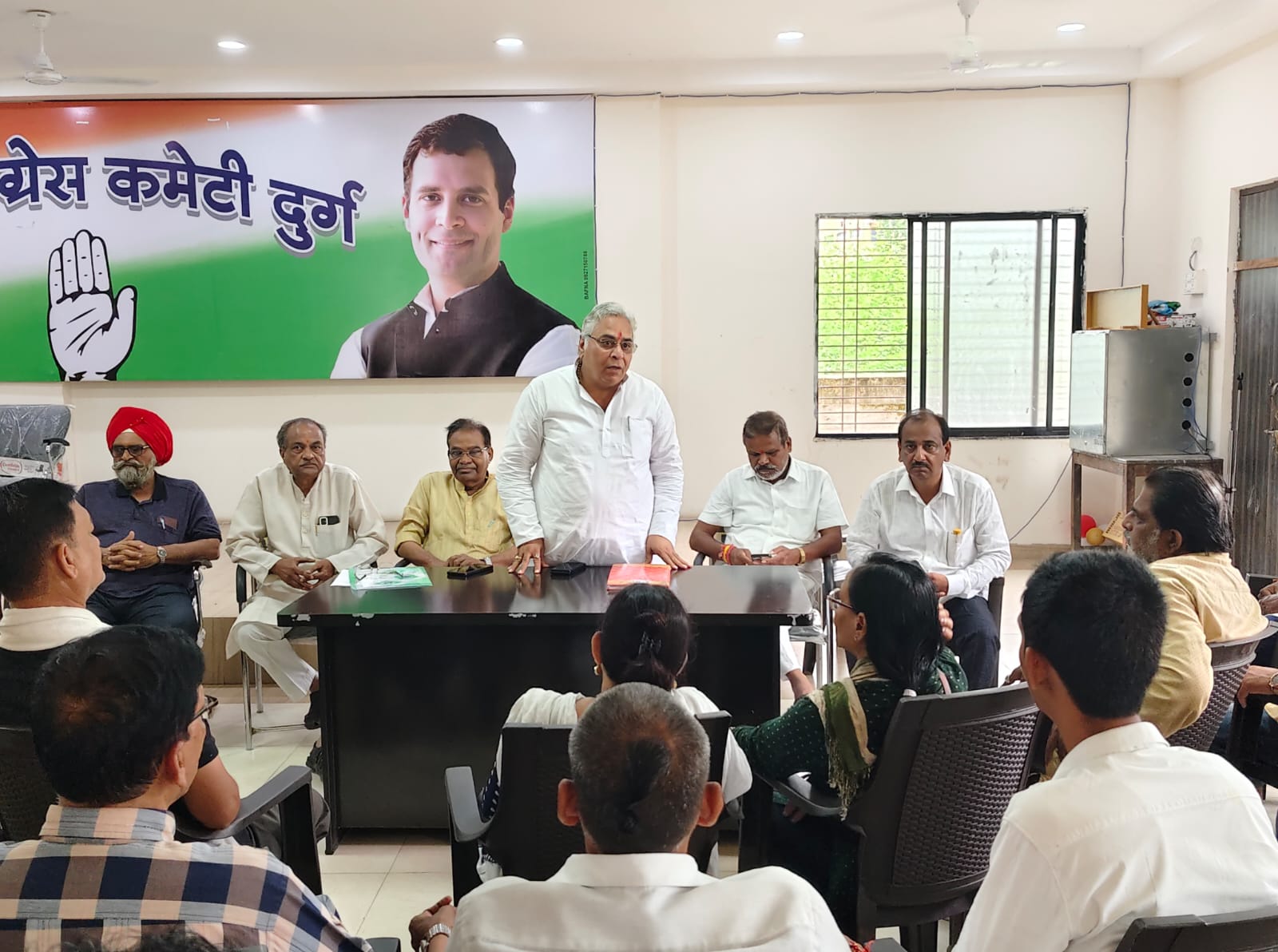 दुर्ग- छत्तीसगढ़ प्रदेश कांग्रेस कमेटी के निर्देश पर मध्य ब्लॉक कांग्रेस कमेटी दुर्ग की आवश्यक बैठक संगठन सृजन अभियान के तहत राजीव भवन दुर्ग में आयोजित की गई बैठक में पूर्व विधायक अरुण वोरा,छत्तीसगढ़ प्रदेश कांग्रेस कमेटी के महामंत्री राजेंद्र साहू,पूर्व महापौर आर एन वर्मा,मध्य ब्लॉक कांग्रेस कमेटी दुर्ग के प्रभारी कौशल किशोर सिंह,मध्य ब्लॉक कांग्रेस कमेटी के अध्यक्ष अलताफ अहमद,उत्तर ब्लॉक के प्रभारी परमजीत सिंह भी के विशेष उपस्थिति में रखी गई।