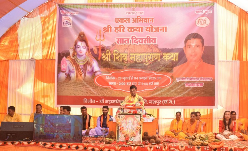 श्रावण मास की इस सात दिवसीय दिव्य कथा श्रृंखला का आयोजन 28 जुलाई से 4 अगस्त 2025 तक महामधेश्वर धाम समिति द्वारा किया गया, जिसमें अयोध्या के प्रसिद्ध कथावाचक पूज्य श्री देवकीनंदन जी महाराज ने शिव महापुराण की अमृतमयी वाणी से हजारों श्रद्धालुओं को मंत्रमुग्ध किया। मुख्यमंत्री ने व्यासपीठ से जुड़े सभी संतजनों को प्रणाम करते हुए समिति को भव्य आयोजन के लिए बधाई एवं आभार प्रकट किया।