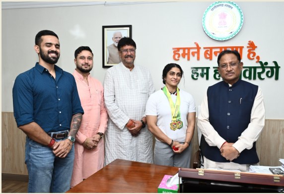 मुख्यमंत्री विष्णुदेव साय ने सुश्री नमी राय पारेख को एशियन अफ्रीकन पैसिफिक पावरलिफ्टिंग चैंपियनशिप में स्वर्ण पदक हासिल करने पर बधाई दी। उन्होंने कहा कि आपने अपनी मेहनत और समर्पण से छत्तीसगढ़ का मान बढ़ाया है। प्रदेश की बेटियों को आपकी उत्कृष्ट उपलब्धि से प्रेरणा मिलेगी। इस अवसर पर अंजय शुक्ला, अंजिनेश शुक्ला, सनी पारेख सहित अन्य गणमान्यजन उपस्थित थे।