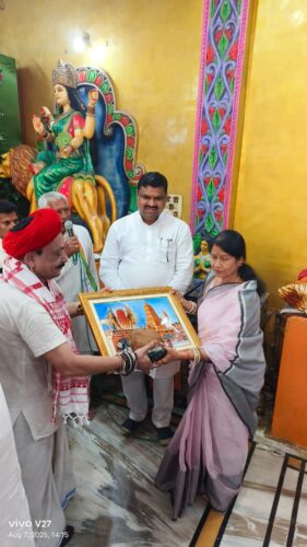 दुर्ग. नगर में सिद्धपीठ के नाम से प्रसिद्ध मां जगतारण दुर्गा काली मंदिर उरला में मुख्य पुजारी गुरुजी श्री सुशील कहार जी की धर्मपत्नी गुरुमाता रागिनी देवी जी कहार की प्रथम पुण्य तिथि पर आज मंदिर परिसर में अष्टधातु से निर्मित प्रतिमा स्थापित कर पुष्पांजलि कार्यक्रम आयोजित किया गया प्रतिमा अनावरण कार्यक्रम में शहर विधायक गजेंद्र यादव,महापौर श्रीमती अल्का बाघमार,सांसद विजय बघेल जी की धर्मपत्नी श्रीमती रजनी बघेल पूर्व विधायक अरुण वोरा भाजपा प्रदेश उपाध्यक्ष सच्चिदानंद उपासने सहित अनेक गणमान्य लोग शामिल हुए कार्यक्रम में उपस्थित नेताओ ने गुरुमाता रागिनी देवी कहार को पुष्पांजलि अर्पित कर उन्हें एक देवी स्वरूपा पुण्य आत्मा बताते हुए अल्पायु में देवगन की पहली बरसी पर नमन कर उनके स्मृति में मंदिर समिति द्वारा स्थापित किए गए प्रतिमा को उनके जीवन काल में किए गए सेवा व आचरण को स्मृति के रूप चीर स्थाई करने की दिशा में सार्थक कदम बताया। ईस अवसर पर प्रमुख रूप से पूर्व सभापति दिनेश देवांगन एमआईसी सदस्यगण देवनारायण चंद्राकर,श्रीमती लीना देवांगन ज्ञानेश्वर ताम्रकार,पार्षद सरस निर्मलकर,श्रीमती रेशमा सोनकर,पूर्व पार्षद शिवेंद्र परिहार,बृजलाल पटेल,मंदिर समिति के संयोजक गुलाब सिंह चौहान,मंडल अध्यक्ष कमलेश फेकर सहित बड़ी संख्या में मंदिर से जुड़े भक्तजन मौजूद थे।