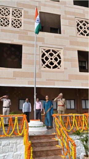 रायपुर – स्वतंत्रता दिवस 15 अगस्त के अवसर पर आज यहां मंत्रालय महानदी भवन नवा रायपुर अटल नगर में अपर मुख्य सचिव श्रीमती रेणु जी पिल्ले ने ध्वजारोहण किया और आयोजित परेड की सलामी ली। उन्होंने इस अवसर पर उपस्थित अधिकारियों-कर्मचारियों और गणमान्य नागरिकों को स्वतंत्रता दिवस की शुभकामनाएं दी।