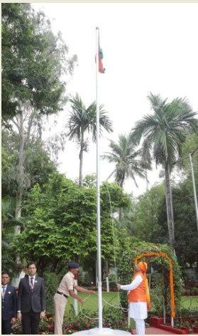 रायपुर- मुख्यमंत्री विष्णु देव साय ने स्वतंत्रता दिवस के अवसर पर राजधानी रायपुर स्थित मुख्यमंत्री निवास परिसर में ध्वजारोहण किया। इस अवसर पर उन्होंने सभी को स्वतंत्रता दिवस की हार्दिक बधाई और शुभकामनाएं दीं।