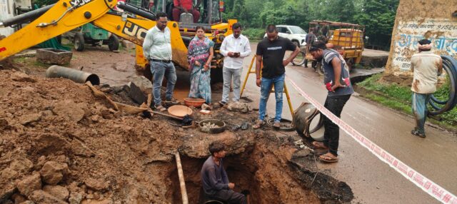 दुर्ग/ नगर पालिक निगम सीमा क्षेत्र अंतर्गत।बघेरा रेल्वे क्रासिंग के पास 400–MM डाया का बड़ी पाईप लाईन फूटा हुआ था।महापौर श्रीमती अलका बाघमार के मार्गदर्शन में आज नगर निगम के जलगृह विभाग द्वारा रिपेयर कार्य कराया गया इस बघेरा टंकी से जुड़े पाईप लाइन में कुछ और जगह बड़ा लिकेज है जिसके मरम्मत के लिए चरणबद्ध रूप से कार्य किया जाएगा तथा टंकी की भी सफाई कार्य जारी है साथ ही बघेरा टंकी मुख्य वाल भी लिकेज है जिसका भी संधारण कार्य किया जा रहा है।
