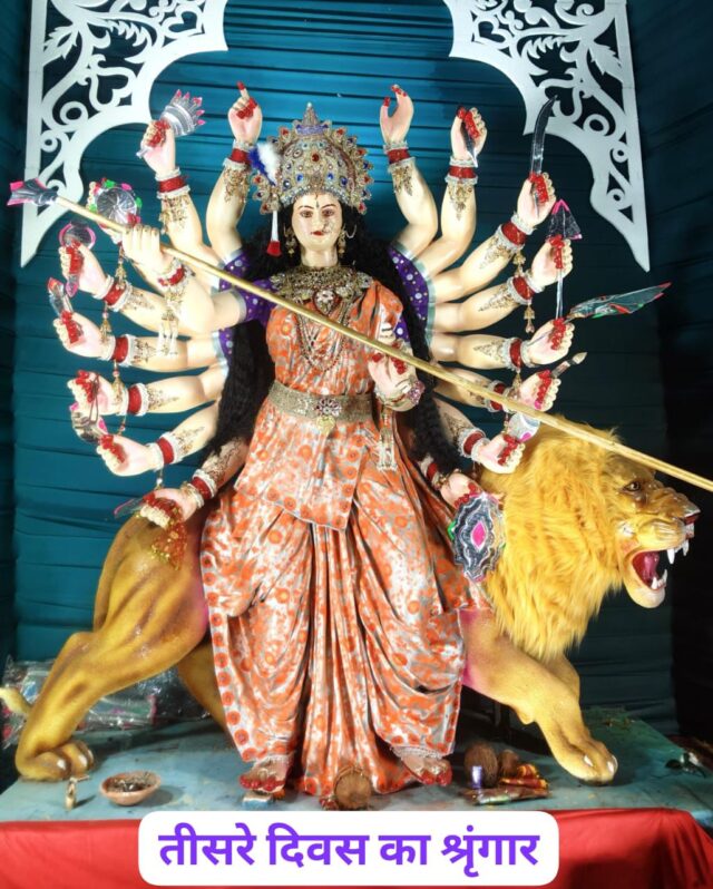 दुर्ग। छत्तीसगढ़ की धर्मिक नगरी दुर्ग के गंजपारा में स्थित सत्तीचौरा मंदिर में क्वांर नवरात्रि पर्व में स्थापित होने वाली दुर्गा प्रतिमा छत्तीसगढ़ में अपनी तरह की अलग प्रतिमा है। यहां प्रतिदिन माता का श्रृंगार किया जाता है। श्रृंगार भी केवल ज्वेलरी या अन्य बदलने तक सीमित नहीं है।