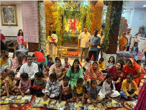 कन्या भोज में दुर्ग महापौर अल्का बाघमार उपस्थित रही जिनके द्वारा कन्या माताओं का पूजन किया गया