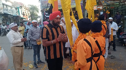 राजनांदगांव। सिख धर्म के संस्थापक प्रथम गुरू तथा मानवीय एकता के महान संदेश वाहक श्री गुरूनानक जी का 556वां आगमन प्रकाश पर्व पर 05 नवंबर को हर्षोल्लास के साथ मनाया जाएगा। इससे पूर्व 03 नवंबर सोमवार को गुरूद्वारा श्री गुरूसिंह सभा द्वारा शहर में पंच प्यारों की अगुवाई में गुरू ग्रंथ साहिब की भव्य शोभायात्रा निकाली गई। गुरुद्वारा परिसर से निकली शोभायात्रा मानव मंदिर चौक पहुंची, जहां पर शहर जिला कांग्रेस अध्यक्ष कुलबीर सिंह छाबड़ा के नेतृत्व में कांग्रेसजनों द्वारा फुलमालाओं से शोभायात्रा का आत्मीय स्वागत किया। इस दौरान घोड़ों पर सवार छोटे बच्चें तथा पंच प्यारे एवं शबद कीर्तन करते हुए कीर्तनी जत्थे नगर कीर्तन की शोभा बढ़ा रहे थे।