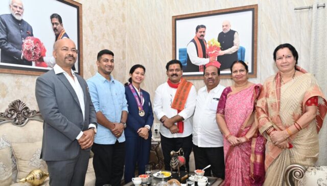 उपमुख्यमंत्री श्री शर्मा ने आकांक्षा को वर्ल्ड कप विजय की बधाई और शुभकामनाएं देते हुए कहा की आपकी सफलता पूरे छत्तीसगढ़ की महिलाओं के लिए प्रेरणादायी है। कवर्धा की बेटी का विश्व विजेता बनने में अमूल्य योगदान हम सभी के लिए गर्व की बात है। इससे हमारे प्रदेश की बालिकाएं भी खेल के क्षेत्र में आगे आने के लिए प्रेरित होंगी। भारतीय महिला क्रिकेट टीम की ऐतिहासिक जीत में आपकी भूमिका ने हम सभी को गौरव दिलाया है। इस अवसर पर उपमुख्यमंत्री श्री शर्मा ने आकांक्षा सत्यवंशी को सम्मान स्वरूप मेडल पहनाकर और स्मृति चिन्ह भेंट कर सम्मानित किया और पूरे परिवार के साथ स्वल्पाहार भी किया। फिजियोथेरेपिस्ट आकांक्षा सत्यवंशी ने जीत की खुशी साझा करते हुए कहा कि मुझे गर्व है कि मैं अपने प्रदेश का प्रतिनिधित्व करते हुए इस सफलता में योगदान दे पाई। उन्होंने अपने पति को अपना सहयोगी बताया। उपमुख्यमंत्री ने उन्हें बस्तर ओलंपिक में शामिल होकर प्रतिभागियों को प्रोत्साहित करने हेतु आमंत्रित भी किया।