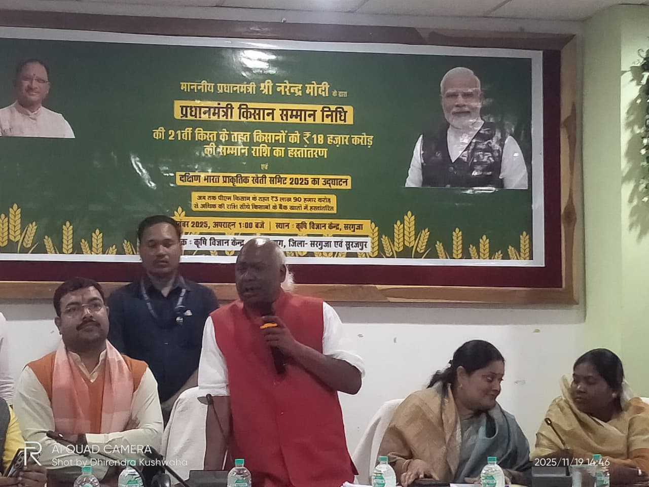 अम्बिकापुर / जिला स्तरीय कार्यक्रम कृषि विज्ञान केंद्र अजिरमा अम्बिकापुर में सांसद श्री चिंतामणी महाराज के मुख्य आतिथ्य में आयोजित किया गया। इस कार्यक्रम में जिले के कृषको को प्रधानमंत्री किसान सम्मान निधि योजना की 21 वी क़िस्त की राशि हस्तांतरित की गई। जिसमें जिले के पी एम किसान पंजीकृत पात्र 100215 कृषको को 20.04 करोड़ रुपये। सीधे कृषको के बैंक खाते में अंतरण किया गया जिससे जिले के कृषको में खुशीओ से चेहरे में चमक आ गई है सुश्री संपदा पैकरा उपसंचालक कृषि सूरजपुर की मार्गदर्शन में जिला स्तरीय कार्यक्रम कृषि विज्ञान केंद्र अजिरमा अम्बिकापुर में आयोजित किया गया जिसमें जिले के 105 कृषक शामिल होकर कार्यक्रम को सफल बनाकर श्री नरेंद्र मोदी के परिचर्चा आनन्द लये साथ ही विकासखण्ड स्तर एव ग्राम स्तर में भी कार्यक्रम का आयोजन किया गया जिसमें जिले के लगभग 1000 कृषको द्वारा कार्यक्रम का आनन्द लिये इस कार्यक्रम में संदीप शर्मा कार्यक्रम समन्वयक के वी के अजिरमा, श्री संदीप सिन्हा सहायक संचालक कृषि ,धीरेंद्र कुशवाहा कृषि विकास अधिकारी अभिषेक सिंह ग्रामीण कृषि विस्तार अधिकारी रजनी पैकरा मोनू ठाकुर एव कृषको का विशेष सहयोग रहा ।