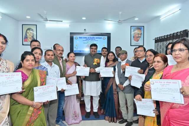 दुर्ग / जिला शिक्षा एवं प्रशिक्षण संस्थान (डाइट) द्वारा अछोटी में दो दिवसीय जिला स्तरीय कार्यशाला का आयोजन किया गया। कार्यक्रम के मुख्य अतिथि स्कूल शिक्षा मंत्री श्री गजेन्द्र यादव रहे। अपने उद्बोधन में उन्होंने नई शिक्षा नीति के प्रावधानों का उल्लेख करते हुए कहा कि आधुनिक समय में केवल गुणवत्तापूर्ण शिक्षा ही नहीं, बल्कि कौशल आधारित प्रशिक्षण भी आवश्यक है। उन्होंने कहा कि शिक्षा के साथ कौशल उन्नयन ही विद्यार्थियों को रोजगारोन्मुख बनाएगा और उन्हें बदलते वैश्विक परिदृश्य के अनुरूप सक्षम बनाएगा। कार्यशाला के दौरान शिक्षा, ग्रामोद्योग एवं विधि-विधायी मंत्री श्री यादव ने व्यवसायिक शिक्षा से जुड़ी चुनौतियों और संभावनाओं पर शिक्षकों से विस्तृत चर्चा की। उन्होंने कहा कि रोजगारमुखी शिक्षा और आधुनिक कौशल विकास को पाठ्यक्रम से जोड़ने की दिशा में यह कार्यशाला महत्वपूर्ण पहल है। मंत्री यादव ने बताया कि नई शिक्षा नीति में विद्यार्थियों को प्रारंभिक स्तर से ही कौशल शिक्षा, प्रायोगिक अधिगम, डिजिटल साक्षरता और व्यवसायिक प्रशिक्षण से जोड़ने की व्यवस्था की गई है। इससे भविष्य में युवाओं के लिए रोजगार के व्यापक अवसर उपलब्ध होंगे। इस अवसर पर प्राचार्य डाइट श्री पी. सी. मर्कले, डॉ. शिशिरकला भट्टाचार्य, श्रीमति संध्या शर्मा, डॉ. नीलम दुबे, डॉ. वंदना सिंह, डॉ. एच. के. साहू सहित बड़ी संख्या में शिक्षकगण उपस्थित रहे।