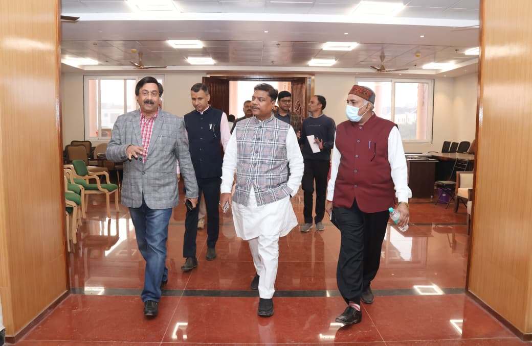 संसदीय कार्य मंत्री श्री केदार कश्यप ने नवीन विधानसभा भवन का निरीक्षण कर आगामी शीतकालीन सत्र की तैयारियों की विस्तार से समीक्षा की। उन्होंने सदन संचालन से जुड़े सभी तकनीकी, सुरक्षा और प्रोटोकॉल संबंधी प्रबंधों की जानकारी ली। निरीक्षण के दौरान मंत्री श्री कश्यप ने अधिकारियों को सभी कार्य समयबद्ध और प्रभावी रूप से पूरा करने के निर्देश दिए। उन्होंने कहा कि शीतकालीन सत्र महत्वपूर्ण है। सदन की कार्यवाही सुचारू रूप से चल सके, इसके लिए सभी आवश्यक व्यवस्थाओं को पहले से दुरुस्त होना जरूरी है। जनता से जुड़े विषयों पर गंभीरता से चर्चा हो, यही हमारी प्राथमिकता है। मंत्री श्री कश्यप ने बैठक कक्ष, प्रेस गैलरी, वीआईपी लाउंज, सुरक्षा व्यवस्था और कर्मचारियों की तैनाती की भी जानकारी ली। उन्होंने सत्र के दौरान उपयोग होने वाले तकनीकी उपकरणों, ऑडियो-वीडियो सिस्टम और दस्तावेज प्रबंधन की तैयारियों की भी समीक्षा की। इस अवसर पर विधानसभा सचिव श्री दिनेश शर्मा सहित अन्य वरिष्ठ अधिकारी उपस्थित रहे।