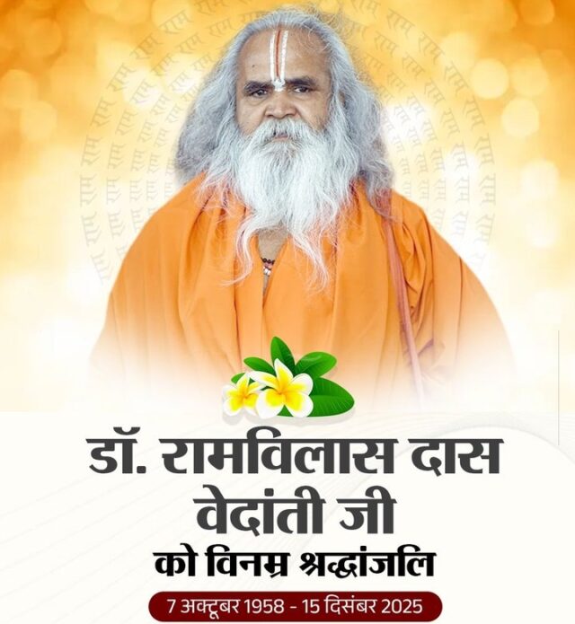 रायपुर / मुख्यमंत्री श्री विष्णु देव साय ने रामभक्ति की अमर प्रतिमूर्ति, श्रीराम जन्मभूमि आंदोलन के अग्रणी स्तंभ, पूर्व लोकसभा सांसद एवं संत परंपरा के महान प्रतिनिधि परम पूज्य श्रद्धेय स्वामी डॉ. रामविलासदास वेदान्ती जी के देवलोकगमन पर गहरा शोक व्यक्त किया है। मुख्यमंत्री श्री साय ने कहा कि स्वामी डॉ. रामविलासदास वेदान्ती जी का देवलोकगमन समस्त रामभक्तों, सनातन समाज और राष्ट्र के लिए अपूरणीय क्षति है। उन्होंने अपना सम्पूर्ण जीवन श्रीराम के काज, धर्म-संरक्षण और लोककल्याण के लिए समर्पित कर दिया। उनका तपस्वी जीवन, स्पष्ट वैचारिक दृष्टि और निर्भीक राष्ट्रवादी चिंतन समाज को युगों तक मार्गदर्शन देता रहेगा। मुख्यमंत्री ने कहा कि श्रीराम जन्मभूमि आंदोलन के दौरान स्वामी वेदान्ती जी का योगदान ऐतिहासिक और अविस्मरणीय रहा है। उन्होंने अपने आचरण, विचार और संघर्ष से यह सिद्ध किया कि संत परंपरा केवल साधना तक सीमित नहीं, बल्कि राष्ट्र और समाज के उत्थान की सशक्त शक्ति है। मुख्यमंत्री श्री साय ने कहा कि स्वामी वेदान्ती जी का ओजस्वी व्यक्तित्व, धर्म के प्रति अटूट निष्ठा और लोकहित के प्रति समर्पण आने वाली पीढ़ियों के लिए प्रेरणा का स्रोत बना रहेगा। उनके द्वारा स्थापित आध्यात्मिक और सांस्कृतिक मूल्यों की विरासत सदैव जीवंत रहेगी। मुख्यमंत्री श्री विष्णु देव साय ने दिवंगत संत के श्रीचरणों में विनम्र श्रद्धांजलि अर्पित करते हुए ईश्वर से प्रार्थना की कि वे पुण्यात्मा को अपने श्रीचरणों में स्थान दें तथा शोकाकुल अनुयायियों और श्रद्धालुओं को इस दुःख को सहन करने की शक्ति प्रदान करें।