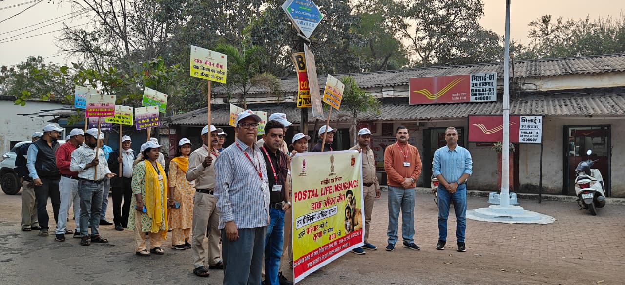 दुर्ग. भारत सरकार के विश्वसनीय उत्पाद डाक जीवन बीमा स्थापना दिवस 01 फरवरी 2026 के अवसर पर दुर्ग डाक संभाग द्वारा प्रमुख डाक घरों से डाक जीवन बीमा योजना को जन जन तक पहुंचाने हेतु रैली एवं कैंप का आयोजन किया गया, सम्मानीय नागरिकों को डाक जीवन बीमा एवं ग्रामीण डाक जीवन बीमा योजनाओं से जोडने हेतु दिनांक 02 फरवरी 2026 को विशेष अभियान चलाया जा रहा है। साथ ही जिन पॉलिसी धारक ने किसी कारण से नियमित प्रीमियम जमा नहीं कर पाए है वे भी इस समय का लाभ उठा कर लेप्स पॉलिसी का रिवाइवल के डिफॉल्ट फीस पर भी 30% तक की छूट प्राप्त कर सकते है।
