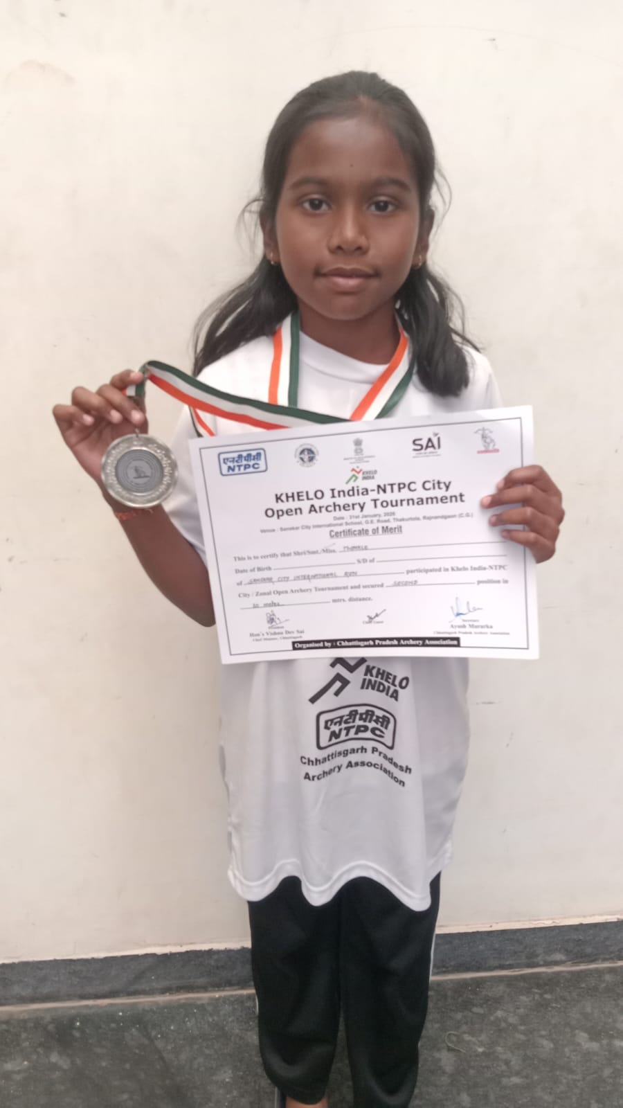 राजनांदगांव। छत्तीसगढ़ के राजनांदगांव स्थित संस्कार सिटी इंटरनेशनल स्कूल की प्रतिभाशाली छात्रा ट्विंकल ने तीरंदाजी प्रतियोगिता में उत्कृष्ट प्रदर्शन कर विद्यालय तथा जिले का नाम गौरवान्वित किया है। 31 जनवरी 2026 को आयोजित एक दिवसीय ओपन सिटी एनटीपीसी खेलो इंडिया तीरंदाजी प्रतियोगिता में ट्विंकल ने 10 मीटर इंडियन राउंड (गर्ल्स कैटेगरी) में दूसरा स्थान प्राप्त कर रजत पदक अपने नाम किया।