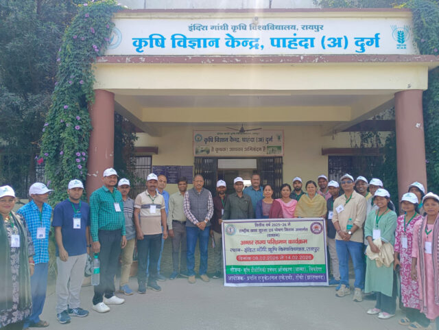 कृषि क्षेत्र में नवाचारों के आदान-प्रदान एवं जलवायु परिवर्तन की चुनौतियों के अनुरूप टिकाऊ खेती को बढ़ावा देने के उद्देश्य से झारखंड राज्य के रांची जिले के कृषकों के एक दल ने छत्तीसगढ़ के दुर्ग जिले का अंतर-राज्यीय अध्ययन भ्रमण किया। यह पहल राज्यों के मध्य तकनीकी सहयोग एवं अनुभव साझेदारी को सुदृढ़ करने की दिशा में महत्वपूर्ण कदम है। भ्रमण के दौरान कृषक दल ने पाटन विकासखंड के ग्राम करगा का दौरा कर बिना जुताई (जीरो टिलेज) पद्धति से गेहूं उत्पादन एवं अधिक तापमान सहनशील उन्नत किस्म ‘कनिष्का’ के प्रदर्शन का अवलोकन किया। साथ ही असिंचित क्षेत्रों में धान कटाई उपरांत खेत की नमी का उपयोग करते हुए उतेरा पद्धति से तिवड़ा की खेती तथा मेड़ पर कम अवधि वाली ‘राजेश्वरी फूले’ अरहर की खेती की तकनीक का निरीक्षण किया। स्थानीय प्रगतिशील कृषकों से संवाद कर दल ने कम लागत में अधिक उत्पादन एवं बेहतर लाभ की संभावनाओं पर विस्तार से जानकारी प्राप्त की। कृषक दल ने कृषि विज्ञान केंद्र, पाहंदा (अ) का भी भ्रमण किया, जहाँ वैज्ञानिकों द्वारा धनिया, तिवड़ा, चना, सरसों एवं हल्दी की वैज्ञानिक खेती, कम लागत आधारित वर्मीकम्पोस्ट उत्पादन, गुणवत्तापूर्ण बीज उत्पादन तथा उद्यानिकी नर्सरी प्रबंधन के संबंध में विस्तृत मार्गदर्शन प्रदान किया गया। किसानों ने जैविक एवं संसाधन-संरक्षण आधारित तकनीकों में विशेष रुचि व्यक्त की। भ्रमण कार्यक्रम में झारखंड कृषि विभाग से श्री विकास कुमार उपस्थित रहे। तकनीकी मार्गदर्शन हेतु कृषि विज्ञान केंद्र के वरिष्ठ वैज्ञानिक एवं प्रमुख डॉ. विजय जैन, डॉ. कमल नारायण वर्मा, डॉ. ललिता रामटेके, डॉ. आरती टिकरिहा, श्रीमती सृष्टि तिवारी एवं कु. हर्षना चंद्राकर ने किसानों को विस्तृत जानकारी प्रदान की। झारखंड के कृषकों ने इस अध्ययन भ्रमण को अत्यंत उपयोगी बताते हुए प्राप्त तकनीकों को अपने क्षेत्रों में लागू करने की प्रतिबद्धता व्यक्त की। यह पहल राज्यों के मध्य ज्ञान एवं नवाचार के आदान-प्रदान को प्रोत्साहित कर कृषि क्षेत्र को अधिक सुदृढ़ एवं लाभकारी बनाने में सहायक सिद्ध होगी।