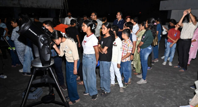सायंकाल आयोजित “प्लानेटरी परेड” (Planetary Alignment) कार्यक्रम में विद्यार्थियों एवं आम जनमानस ने बड़ी संख्या में सहभागिता की। दूरबीन एवं टेलीस्कोप के माध्यम से ग्रहों की विशेष स्थिति का अवलोकन कराया गया, जहाँ विशेषज्ञों ने ग्रहों की पहचान, उनकी कक्षीय गति, चमक एवं आकाश में उनकी स्थिति के वैज्ञानिक कारणों को सरल भाषा में समझाया। प्रतिभागियों ने आकाशीय पिंडों को प्रत्यक्ष देखकर सौरमंडल की संरचना को अधिक स्पष्ट रूप से समझा। आकाश दर्शन सत्र ने उपस्थित जनसमूह में अद्भुत उत्साह, रोमांच एवं वैज्ञानिक जिज्ञासा का संचार किया तथा पूरे कार्यक्रम को अत्यंत ज्ञानवर्धक, प्रेरणादायी एवं स्मरणीय बना दिया। यह आयोजन सैद्धांतिक ज्ञान एवं व्यावहारिक अनुभव का उत्कृष्ट समन्वय रहा, जिसने युवाओं को विज्ञान एवं नवाचार की दिशा में आगे बढ़ने हेतु प्रेरित किया।
