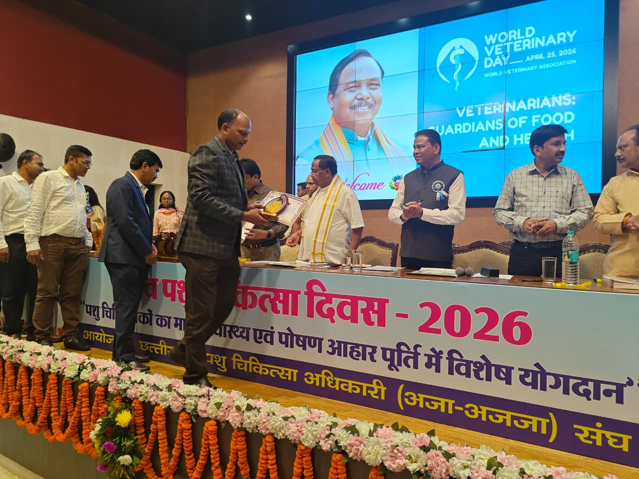 रायपुर। विश्व पशु चिकित्सा दिवस के अवसर पर नवीन विश्राम गृह, रायपुर में एक दिवसीय वार्षिक अधिवेशन का आयोजन किया गया। इस वर्ष का थीम ‘पशु चिकित्सक : भोजन और स्वास्थ्य के संरक्षक’ रखा गया, जो खाद्य सुरक्षा, खाद्य आपूर्ति, जन स्वास्थ्य और पशु स्वास्थ्य की रक्षा में पशु चिकित्सा सेवाओं की महत्वपूर्ण भूमिका को उजागर करता है। खेत से लेकर थाली तक, पशु चिकित्सक यह सुनिश्चित करने में अग्रणी भूमिका निभाते हैं कि हमारा भोजन सुरक्षित और स्वस्थ रहे।